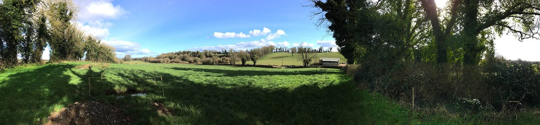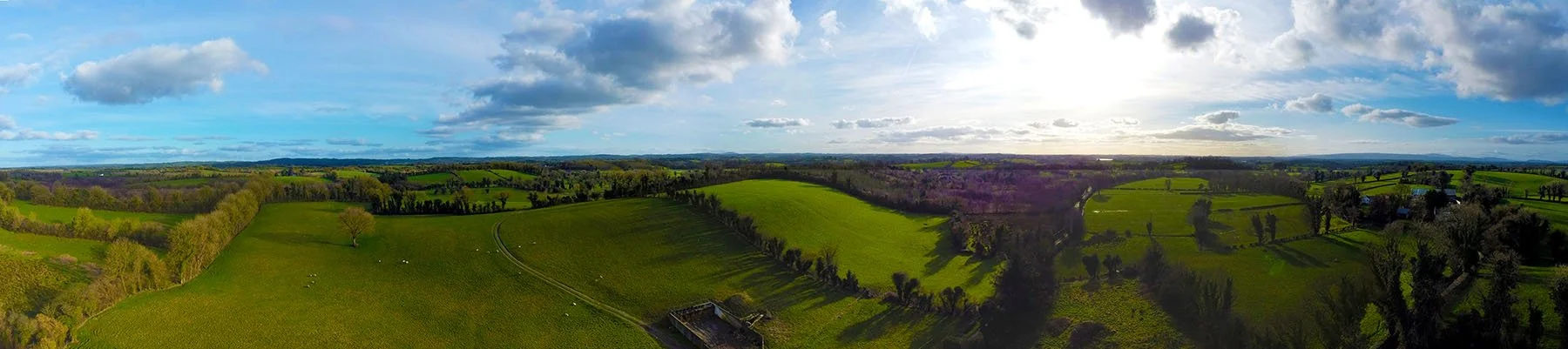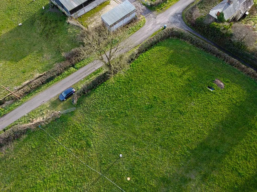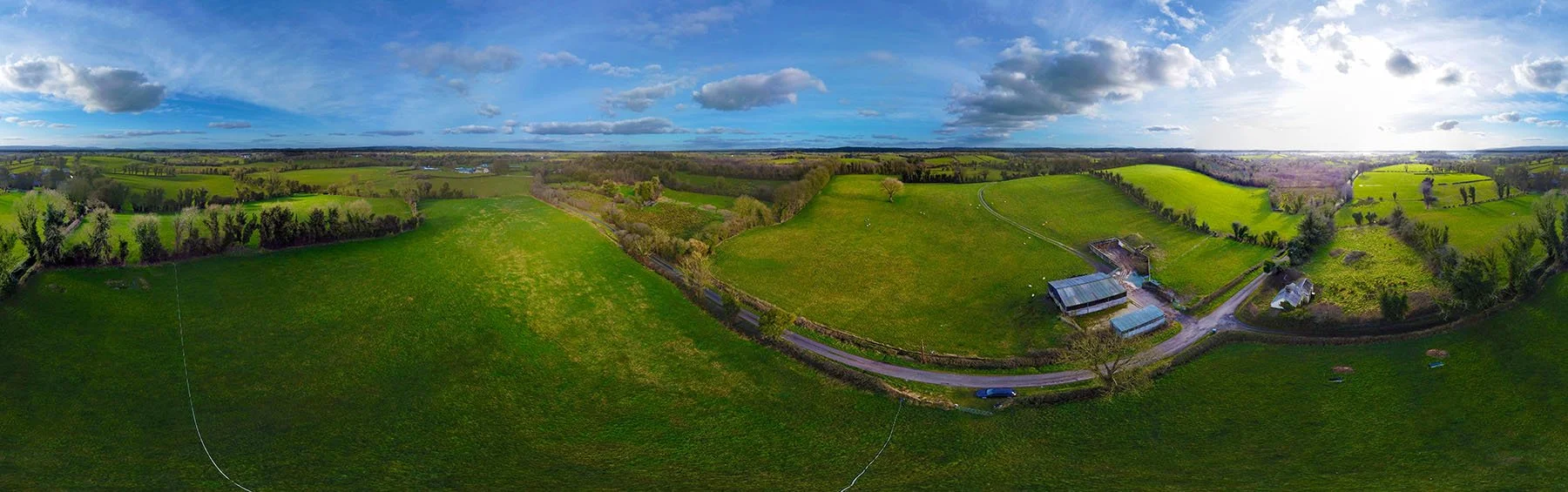 A 360 degree aerial view looking south into County Monaghan. The tape setting-out the eastern site boundary can be seen in this photo, although in reality its perfectly straight!